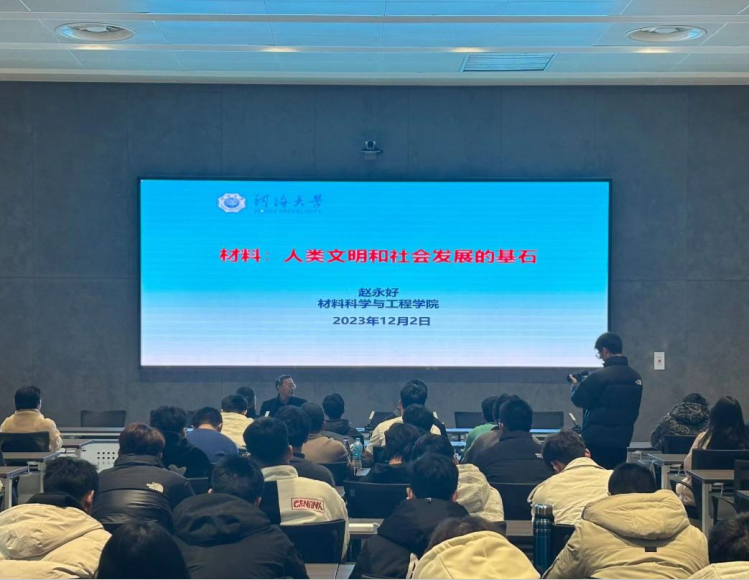 2023年12月2日,探花视频 赵永好院长为全体2023级本科新生作了题为“材料:人类文明和社会发展的基石”的报告,报告由探花视频 副院长崔锦铭主持,2023级全体新生聆听了报告。