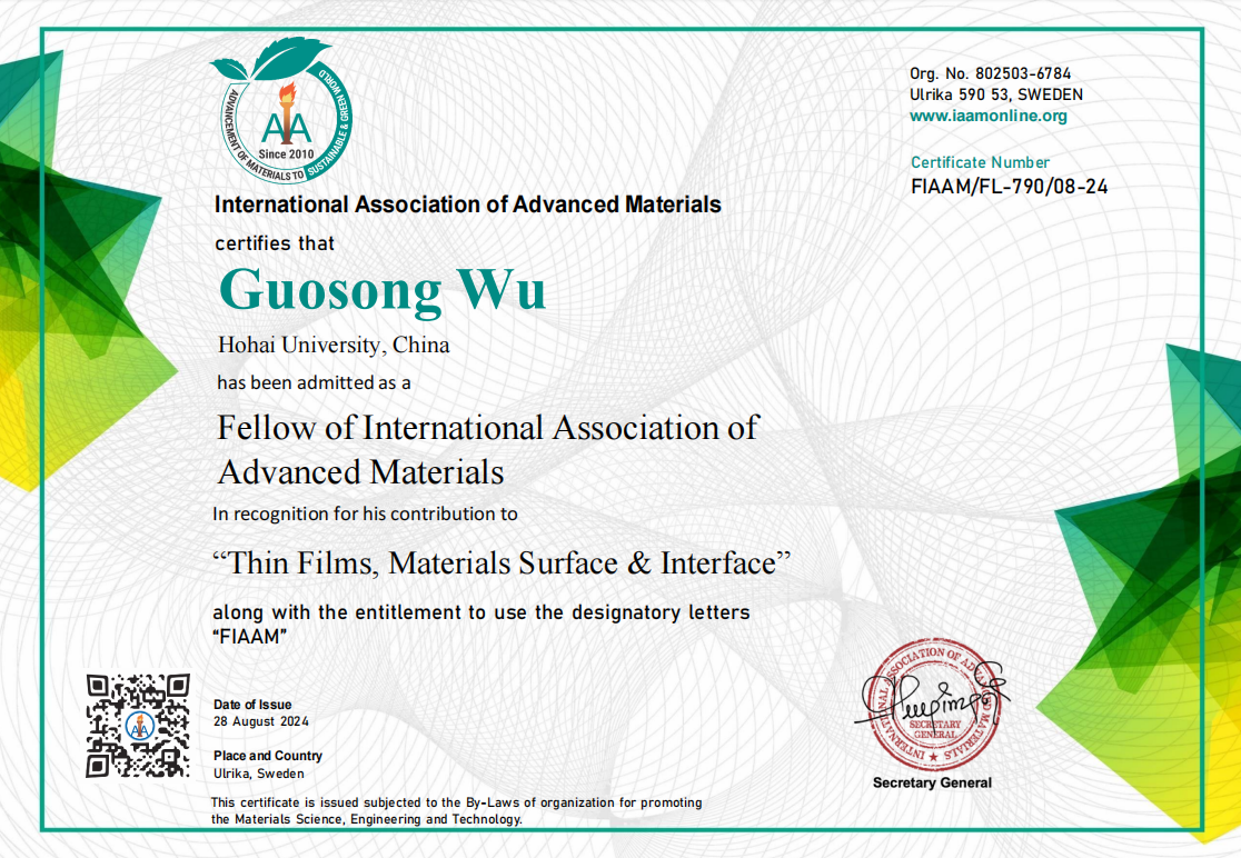 近日,我校探花视频 吴国松教授因其在薄膜和表界面领域的突出贡献当选为国际先进材料协会会士(Fellow of International Association of Advanced Materials,FIAAM),并应邀在由国际先进材料协会主办的第60届先进材料大会上以线上形式做了会士报告。