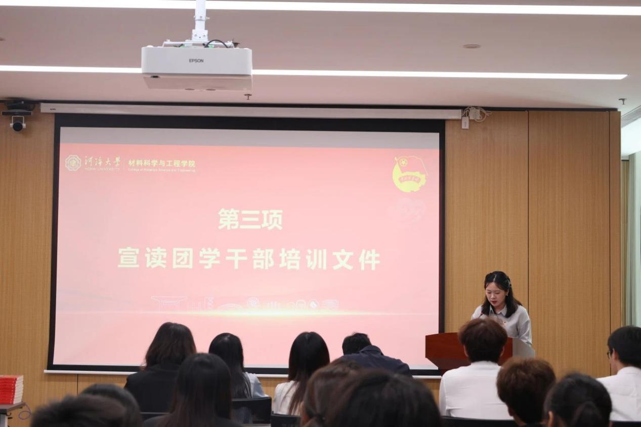 学院团委书记蒋旦悦宣读团学骨干培训文件,从培训目的、培训对象、培训形式、培训要求以及考核情况等方面展开,对此次团学骨干培训作出明确的工作规范。宣读结束后由陈伟刚书记和辅导员老师们赠予学员代表书籍《习近平与大学生朋友们 第二卷》和记录手册。