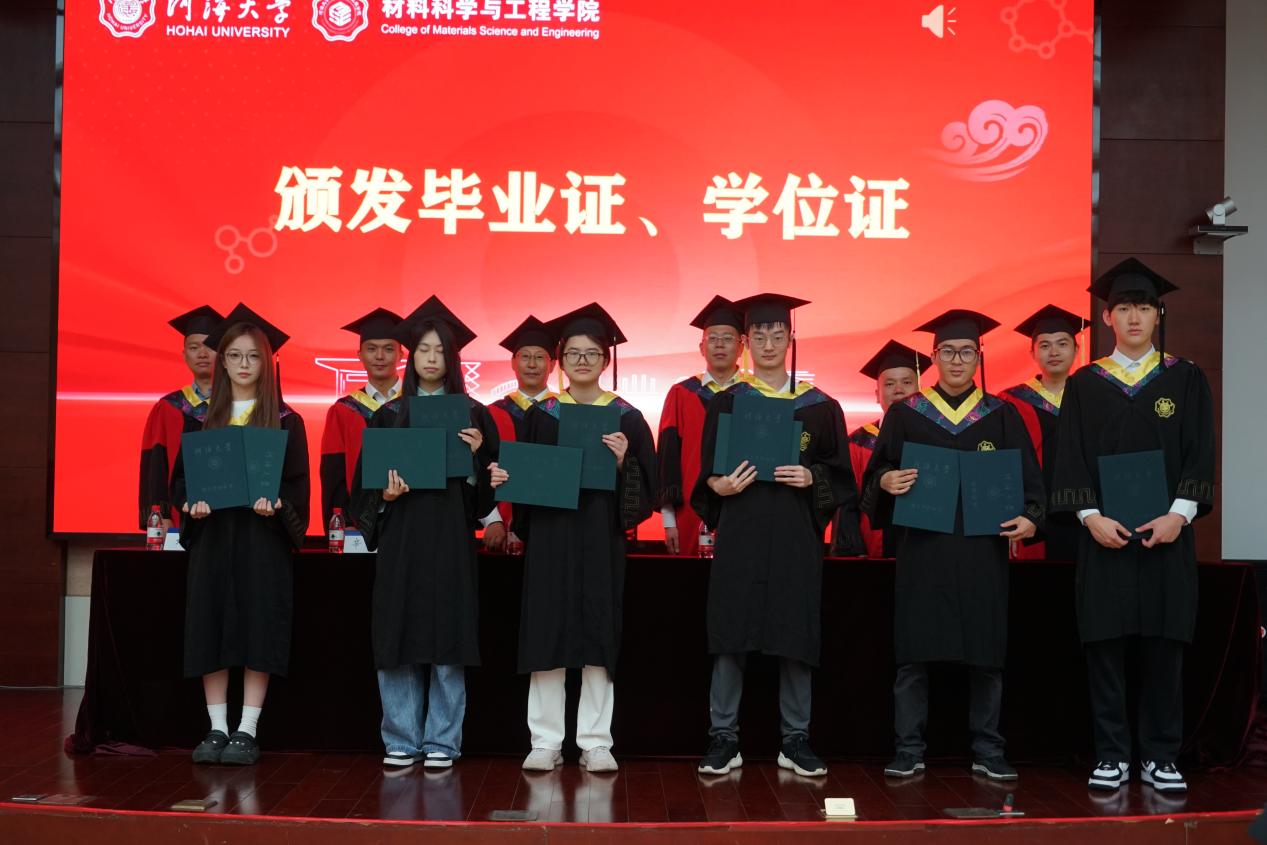 6月19日,探花视频 2025届本科生毕业典礼暨学位授予仪式在江宁校区行政楼105报告厅与常州校区55号楼139报告厅隆重举行,共同见证2025届材料学子完成学业、开启人生新篇章的重要时刻。学院院长赵永好,党委书记陈伟刚,副院长杨可、宋丹,教师代表洪晟、刘欢、严春妍,辅导员温泽出席典礼。2025届全体本科毕业生及部分毕业生家长代表满怀喜悦与憧憬齐聚一堂。典礼由学院党委副书记、副院长辛绍权主持。