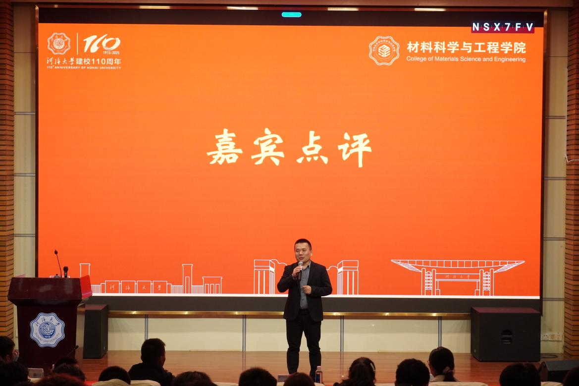待全部节目落幕,学院副院长杨可对大家的表现逐一进行点评,他充分肯定了大家的精彩演出,并借自己的亲身经历勉励材料新生在未来的学习与生活中不惧困难、奋力奔跑,将今天节目中传递出的精神延续下去。