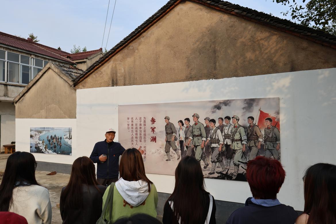随后,队伍前往位于薛埠镇阳山自然村的 “Young山红”青年学习社线路。在这里,青年学生们沿着精心设计的研学路线,通过观看历史图文、实物展陈与沉浸式影音资料,系统学习了阳山村的红色历史与发展变迁。这条融合了红色教育与青春元素的线路,让同学们在行走中重温峥嵘岁月,从先辈的足迹里汲取了不忘初心、继续前进的磅礴力量,进一步坚定了理想信念。